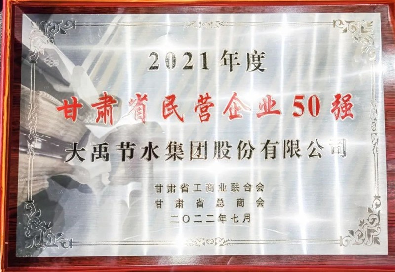 2022年7月4日人生就是博节水集团荣获2021年度甘肃省民营企业50强