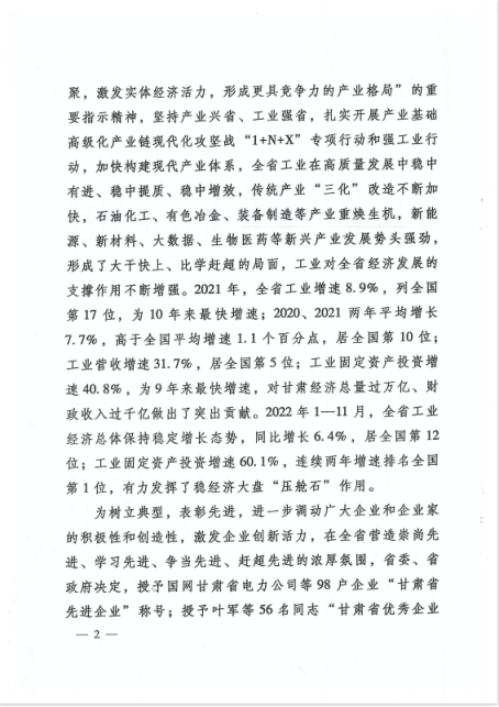 12ÔÂ24ÈÕ£¬¸ÊËàʡȫʡǿ¹¤ÒµÐж¯Íƽø´ó»áôßÏȽøÆóÒµºÍÓÅÒìÆóÒµ¼Ò±íÑï´ó»áÔÚÀ¼ÖÝÕÙ¿ª£¬Ê¡Î¯Êé¼Çºú²ýÉý³öϯ¾Û»á²¢½²»°¡£Ê¡Î¯¸±Êé¼Ç¡¢Ê¡³¤ÈÎÕñº×Ö÷³Ö¾Û»á¡£¾Û»á±íÑïÁË98¼ÒÏȽøÆóÒµºÍ56ÃûÓÅÒìÆóÒµ¼Ò£¨»ñ½±Ãûµ¥¸½Îĺ󣩣¬ÈËÉú¾ÍÊDz©ÈÙâß¡°¸ÊËàÊ¡ÏȽøÆóҵͻ³öТ˳½±¡±£¬¶­Ê³¤ÍõºÆÓîÈÙâß¡°¸ÊËàÊ¡ÓÅÒìÆóÒµ¼Ò¡±³Æºô¡£