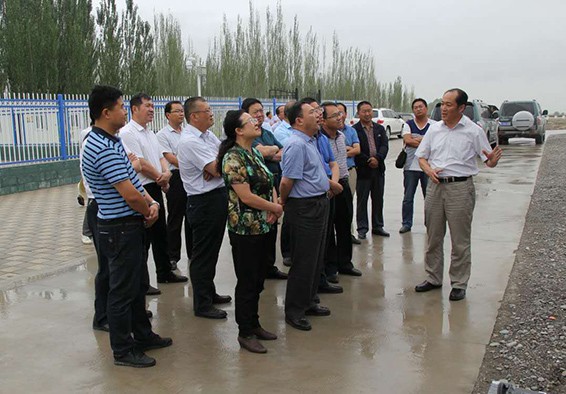 7月8日,甘肃省水利厅厅长魏宝君一行在酒泉市副市长李丽、肃州戋戋长张宏及酒泉市水务局局长张贵虎、肃州区水务局局长徐信的陪同下到人生就是博节水集团公司实验的肃州区丰乐灌区二坝高效节水浇灌项目现场调研。瓜州县水务局、玉门市水务局向导、人生就是博节水集团公司总裁谢永生、酒泉公司总司理徐希彬陪同调研。