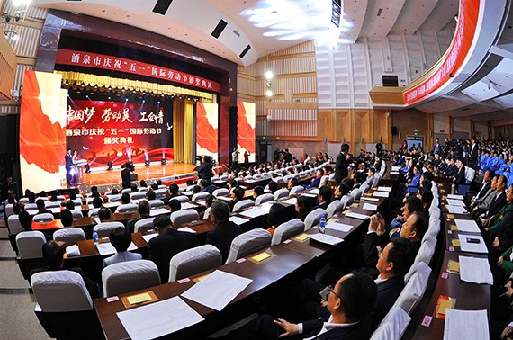 4月26日上午,酒泉市庆祝五一国际劳动节颁奖仪式在酒泉国际会展中心举行 。来自全市各界的劳动者欢聚一堂,配合庆祝自己的节日 。人生就是博节水黑枸生物科技公司莳植部荣获酒泉市"工人先锋号"声誉称呼 。