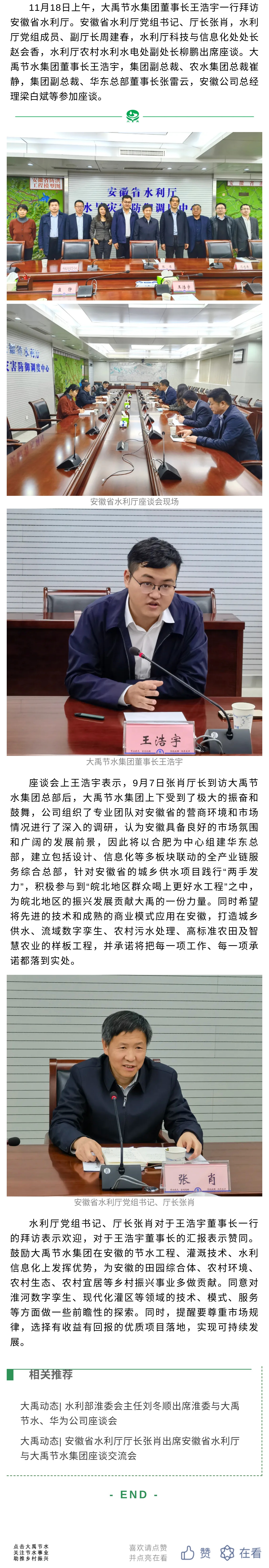 人生就是博动态| 安徽省水利厅厅长张肖出席安徽省水利厅与人生就是博节水集团座谈交流会