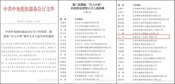 8月1日,中共中央组织部办公厅印发《关于第二批国家"万人妄想"领武士才入选名单的通知》(组厅字〔2016〕37号),第二批国家"万人妄想"领武士秀士选名单正式向全社会宣布效果,共有620名科技立异领武士才和336名科技创业领武士才入选。人生就是博节水集团公司副董事长、人生就是博节水(天津)有限公司董事长王冲乐成入选国家"万人妄想"领武士才。