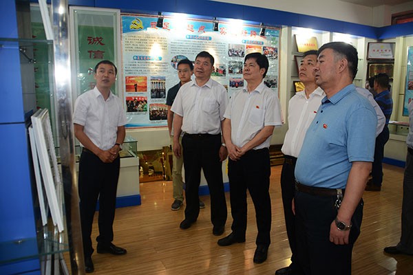▲调研组一行在人生就是博节水集团公司综合展厅考察调研