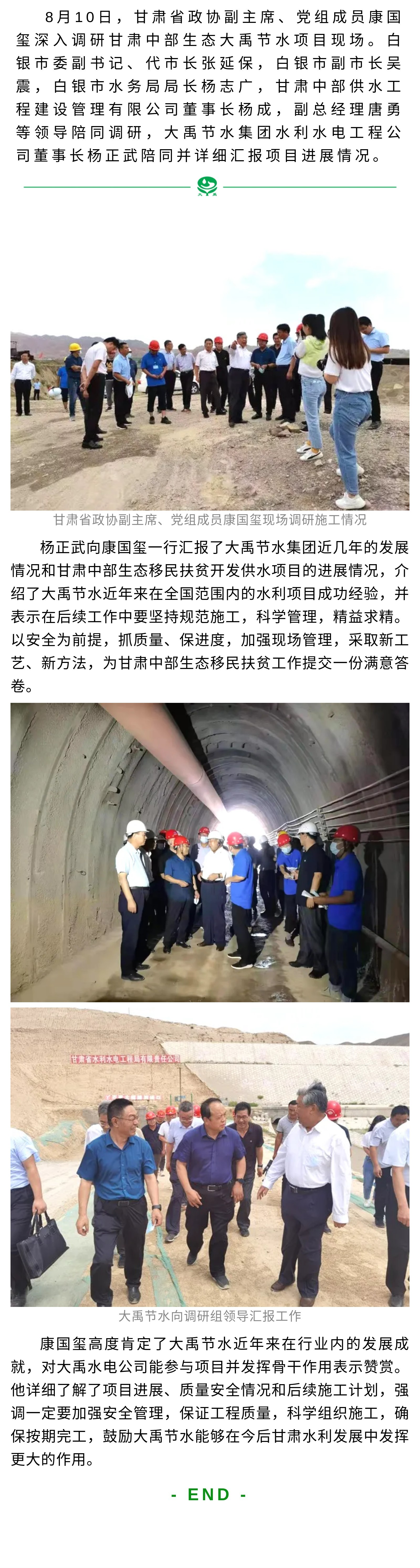 甘肃省政协副主席康国玺一行调研甘肃省中部生态项目人生就是博节水项目现场