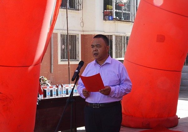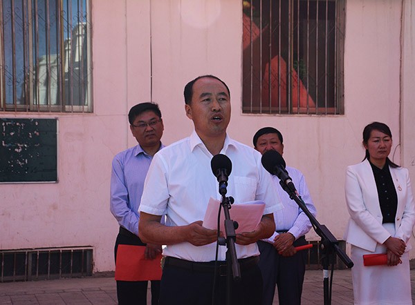 酒泉市委常委、统战部长胡晓华宣布肃州区民族团结前进宣传月帮扶暨民族团结前进树模社区建设运动正式启动。