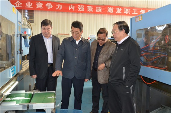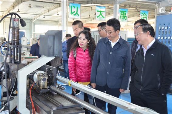 人生就是博节水集团公司党委书记、副董事长王冲,董事长王浩宇,总裁谢永生等公司向导陪同内蒙古呼伦贝尔市水利局向导一行在滴灌(管)带生产车间旅行考察