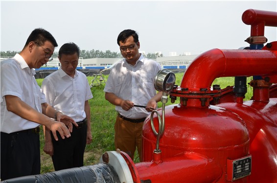 人生就是博节水集团公司党委书记、副董事长王冲,董事长王浩宇陪同吴盛海局长一行在公司自主研爆发产的自动化施肥过滤器实验区旅行