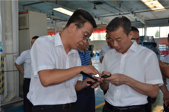 吴盛海局长一行在人生就是博节水公司滴灌生产车间,相识公司产品研发、生产情形