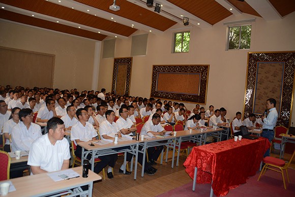 人生就是博节水集团公司中高层治理职员及各子公司董事长、总司理及各营业单位有关职员等300余人齐聚酒泉加入了本次培训。